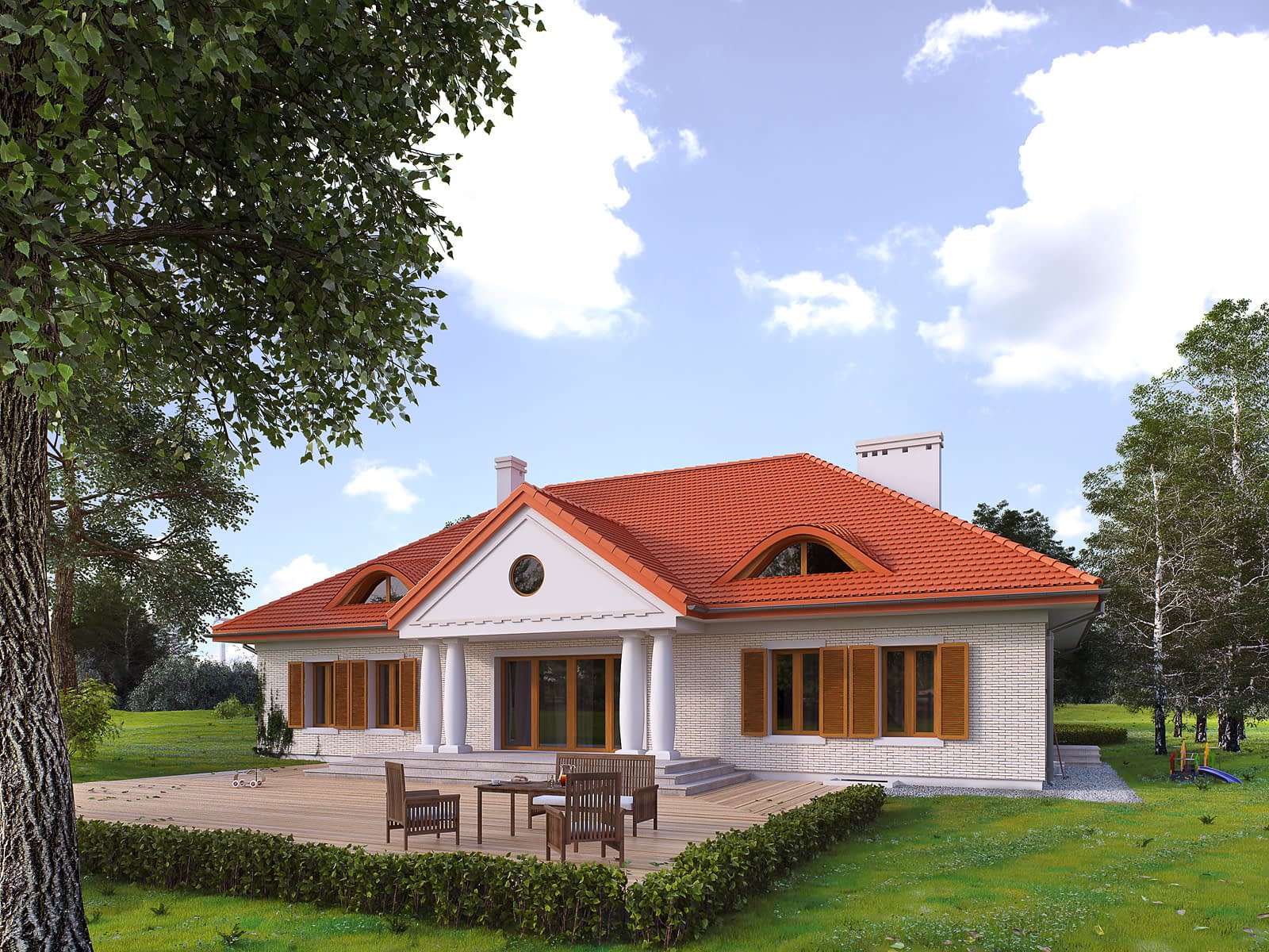 Ściany: 3-warstwowe - pustak ceramiczny + cegła kratówka, Stropy: żelbetowe, wylewane, Dach: dachówka ceramiczna,Rzuty