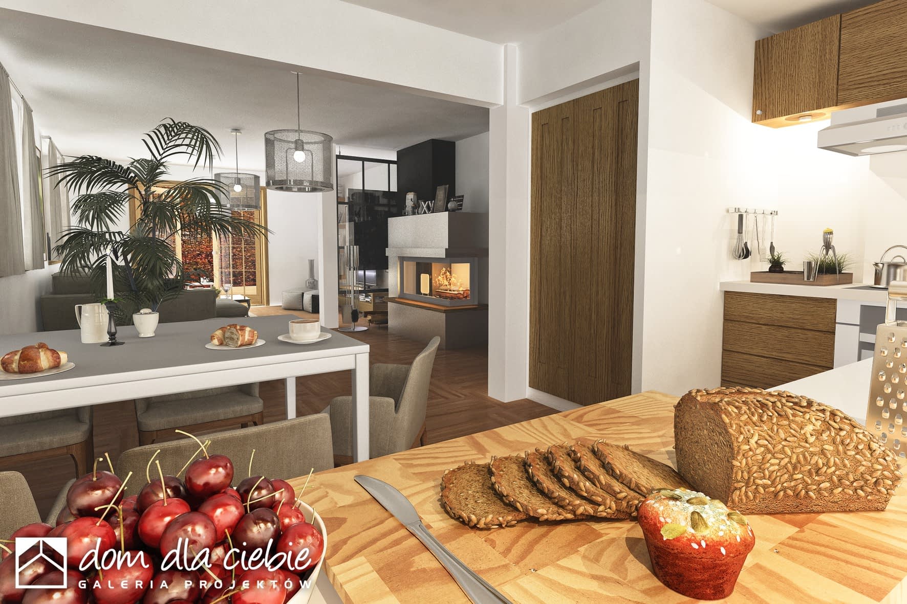 Tomaszek II to dom parterowy, niepodpiwniczony, dla 4-5cio osobowej rodziny o prostej i wyważonej bryle z poddaszem przeznaczonym na cele magazynowe. Czytelny i funkcjonalny rozkład pomieszczeń oraz wyraźny ich podział na strefy dzienną i nocną daje poczucie komfortu i wygody. Strefę dzienną zaprojektowano jako otwartą, łączącą wejście główne i część ogrodową działki. Strefę nocną (3 sypialnie) zorganizowano wokół centralnie umieszczonej łazienki. Obszerny zadaszony taras daje możliwość korzystania z zewnętrznego kominka (grilla) bez względu na warunki atmosferyczne. Centralnie zlokalizowany kominek umożliwia rozprowadzenie ciepła po całym domu.