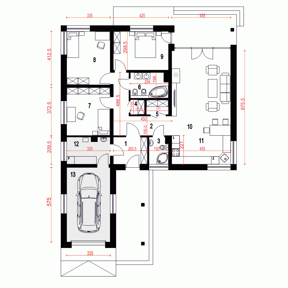 Nasze projekty oferujemy w 3 egzemplarzach, zawierających projekt architektoniczno-budowlany i projekt techniczny. Projekt zagospodarowania działki lub terenu nie wchodzi w skład projektu oferowanego do sprzedaży. Projekt ten należy zlecić we własnym zakresie lokalnemu projektantowi, który opracuje go na podstawie danych zawartych w projekcie architektoniczno-budowlanym i technicznym, po dostosowaniu projektu do warunków lokalnych i wymagań inwestora.