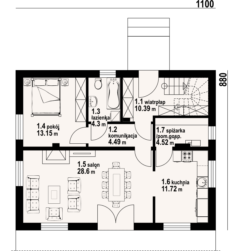 - 1.5 - salon28.6 m²