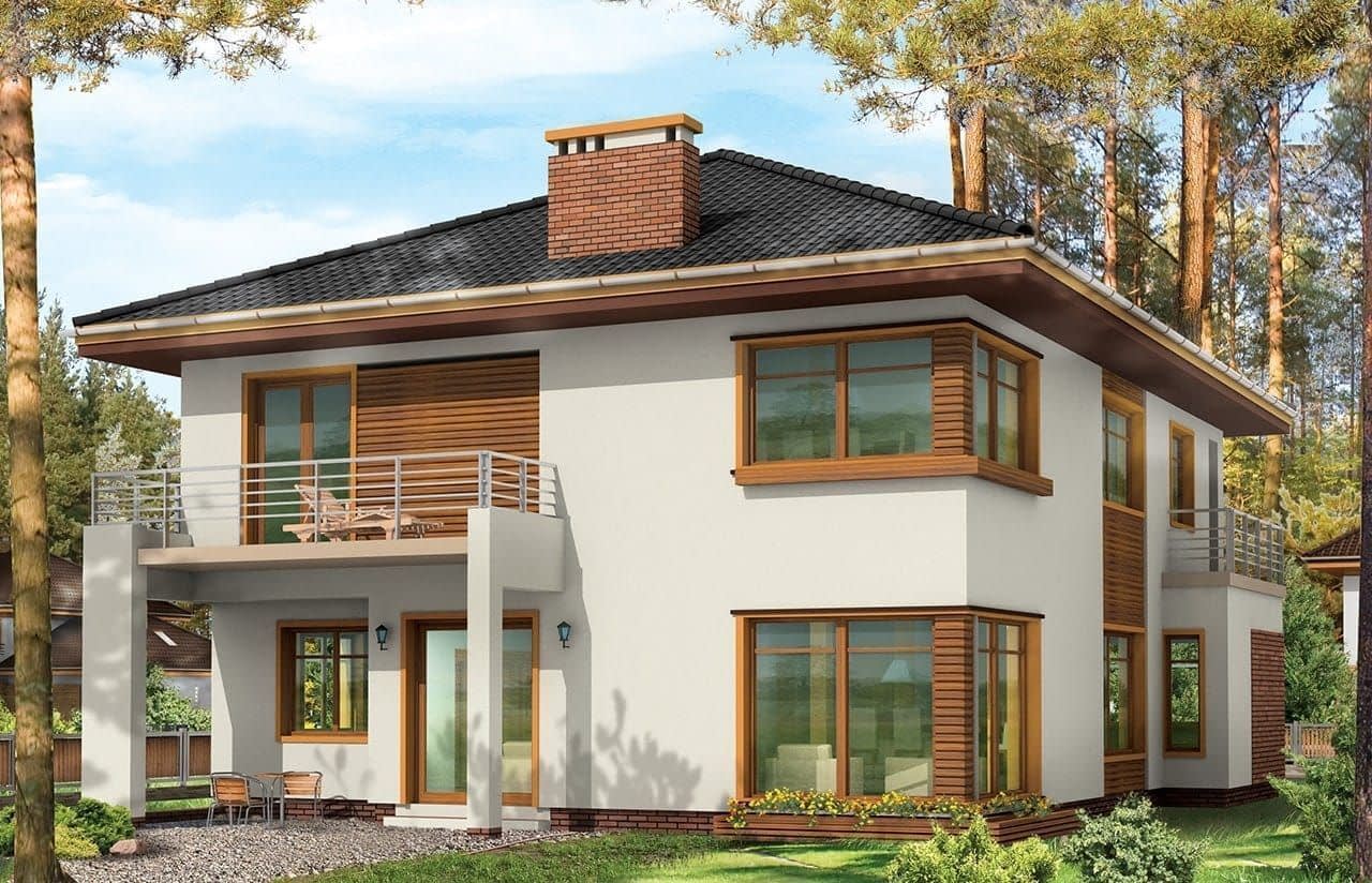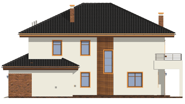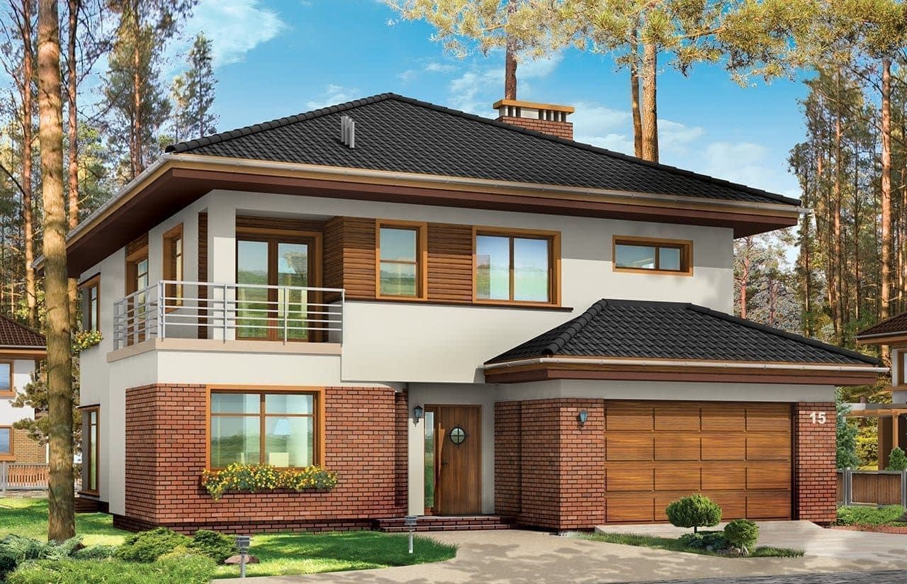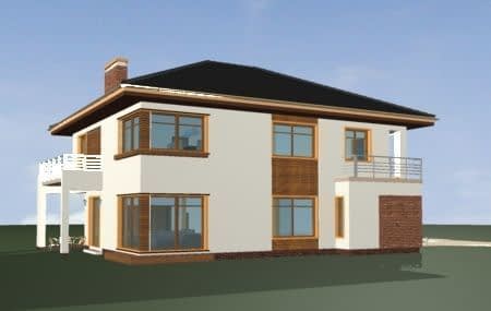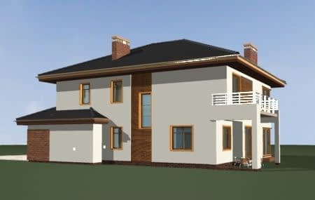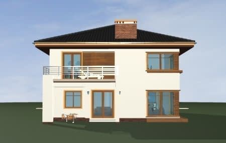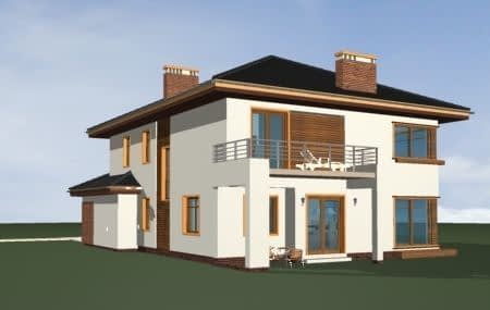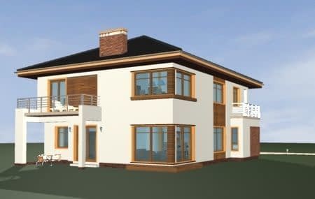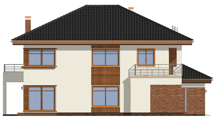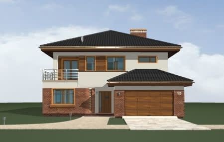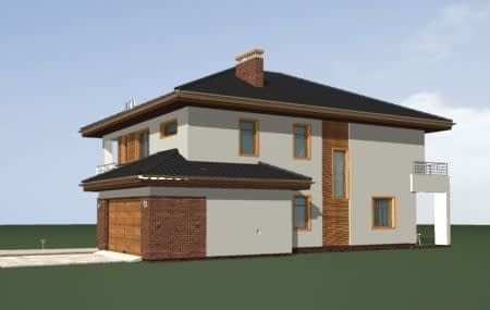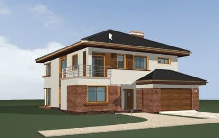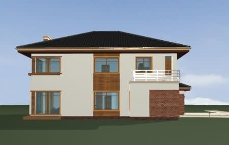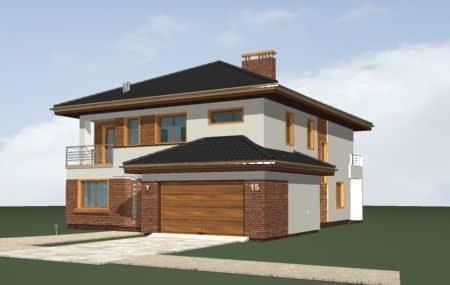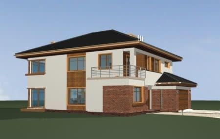 Projekt domu Topaz to elegancki, piętrowy dom jednorodzinny. Budynek o nowoczesnej acz nie przesadzonej architekturze. Projekt domu Topaz występuje w dwóch wersjach wariantowych, ze zróżnicowaną częścią frontową. Bryła budynku jest urozmaicona kilkoma użytymi materiałami, wykuszami i daszkami. Wejście do mieszkania zostało zaakcentowane podcieniem z łukową boczną ścianą z klinkieru. Wnętrze jest uniwersalnym, wygodnym mieszkaniem dla rodziny 4-6 osobowej. Składa się z czterech sypialni na piętrze, z których każda ma swoją garderobę. W sypialni rodziców zaprojektowano dodatkową łazienkę. Na parterze do dyspozycji mamy salon połączony z jadalnią i holem, kuchnię i dodatkowy pokój - gabinet. W domu przewidziano również garaże i przestrzeń gospodarczą. Część ogrodowa domku to duże przeszklenia - otwarcia z salonu na otaczającą dom działkę. Pracownia dysponuje też projektem Topaz w odbiciu lustrzanym.