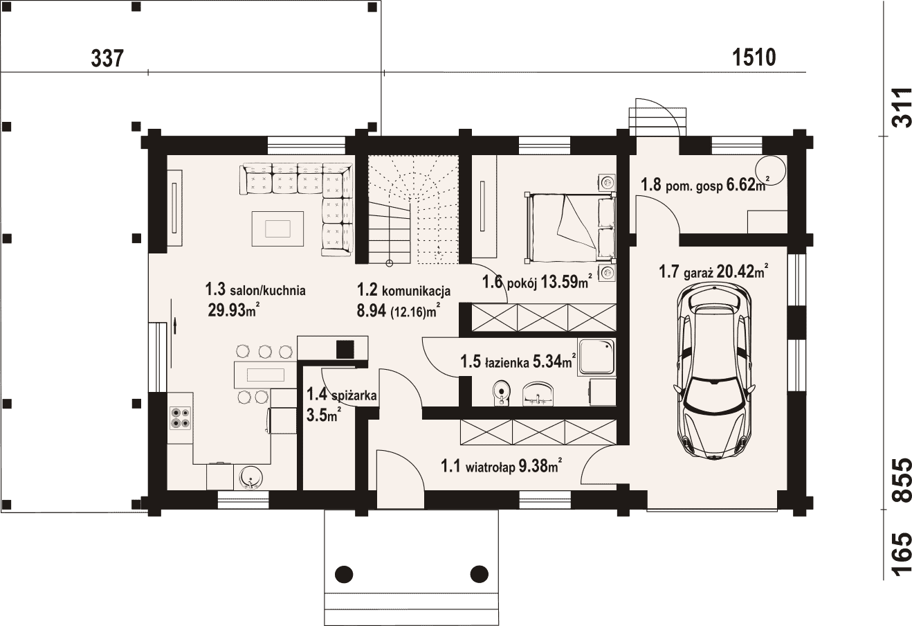 - 1.3 - salon/kuchnia29.93 m²