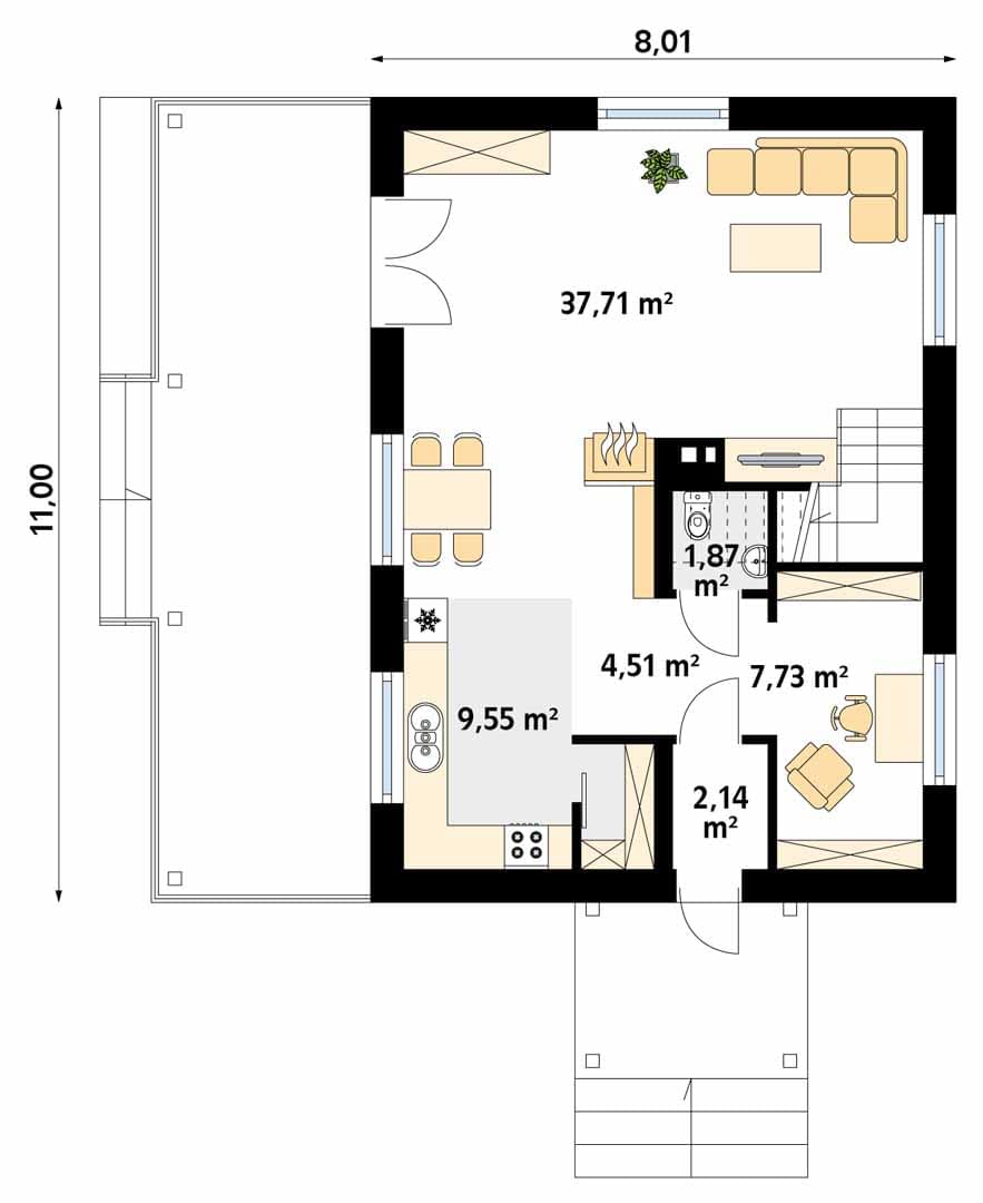 - Długość domu8.01 m
