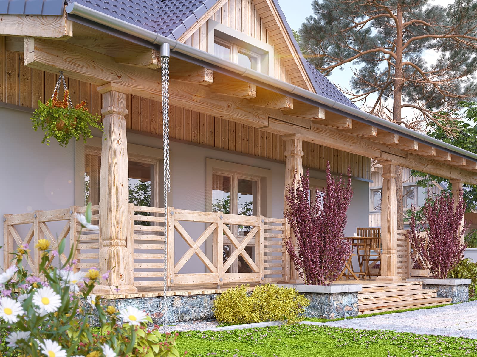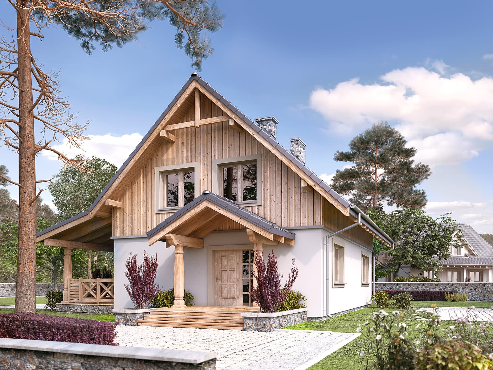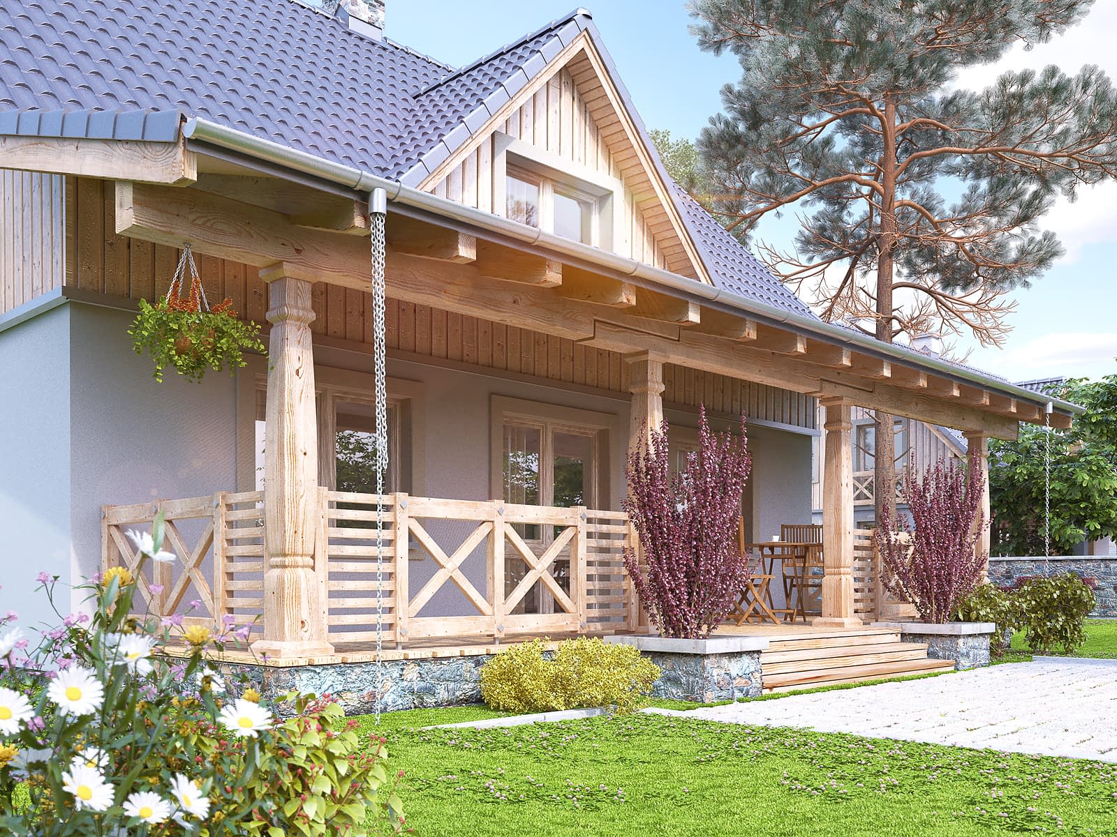Nieduży letniskowy dom, który z powodzeniem może służyć jako całoroczny dom rekreacyjny. Architektura domu z dużą ilością elementów drewnianych wpasuje się idealnie w istniejącą zabudowę rekreacyjną od morza po góry. Ważnym miejscem w domku letniskowym jest duży zadaszony taras, który będzie świetnym miejscem popołudniowych spotkań. Na poddaszu zaprojektowano trzy duże sypialnie i przestronną łazienkę.Konstrukcja