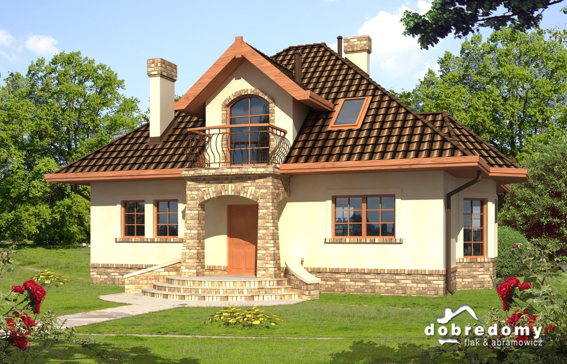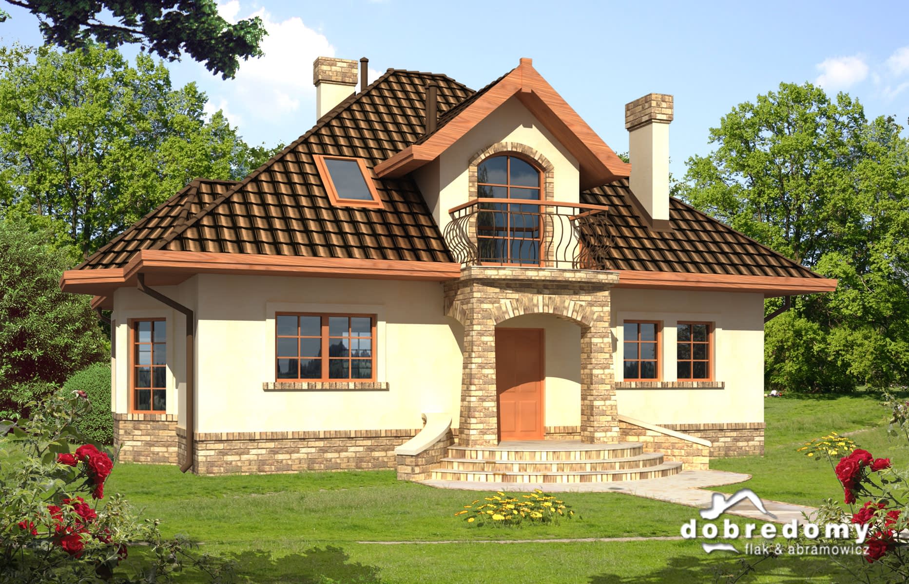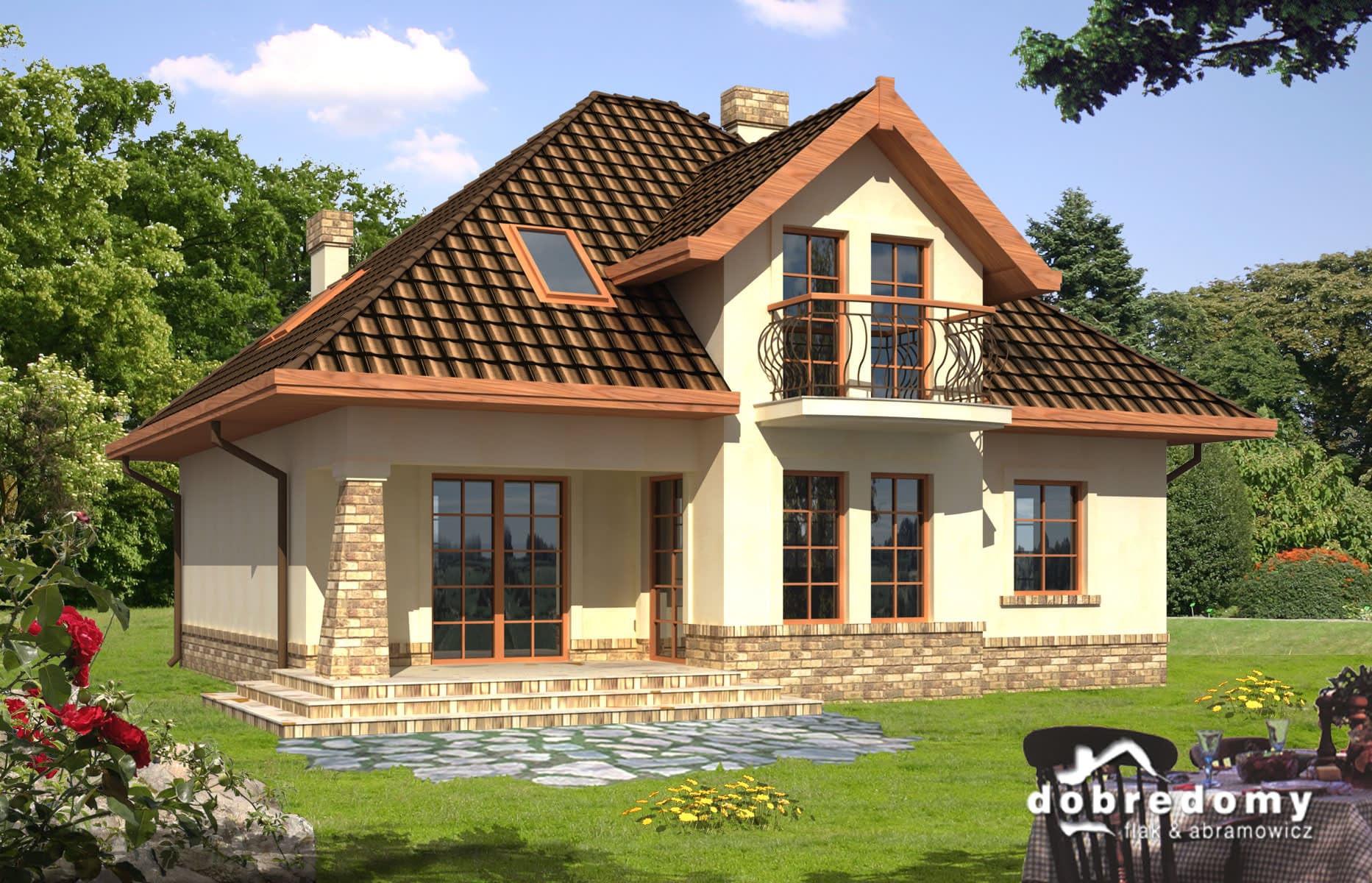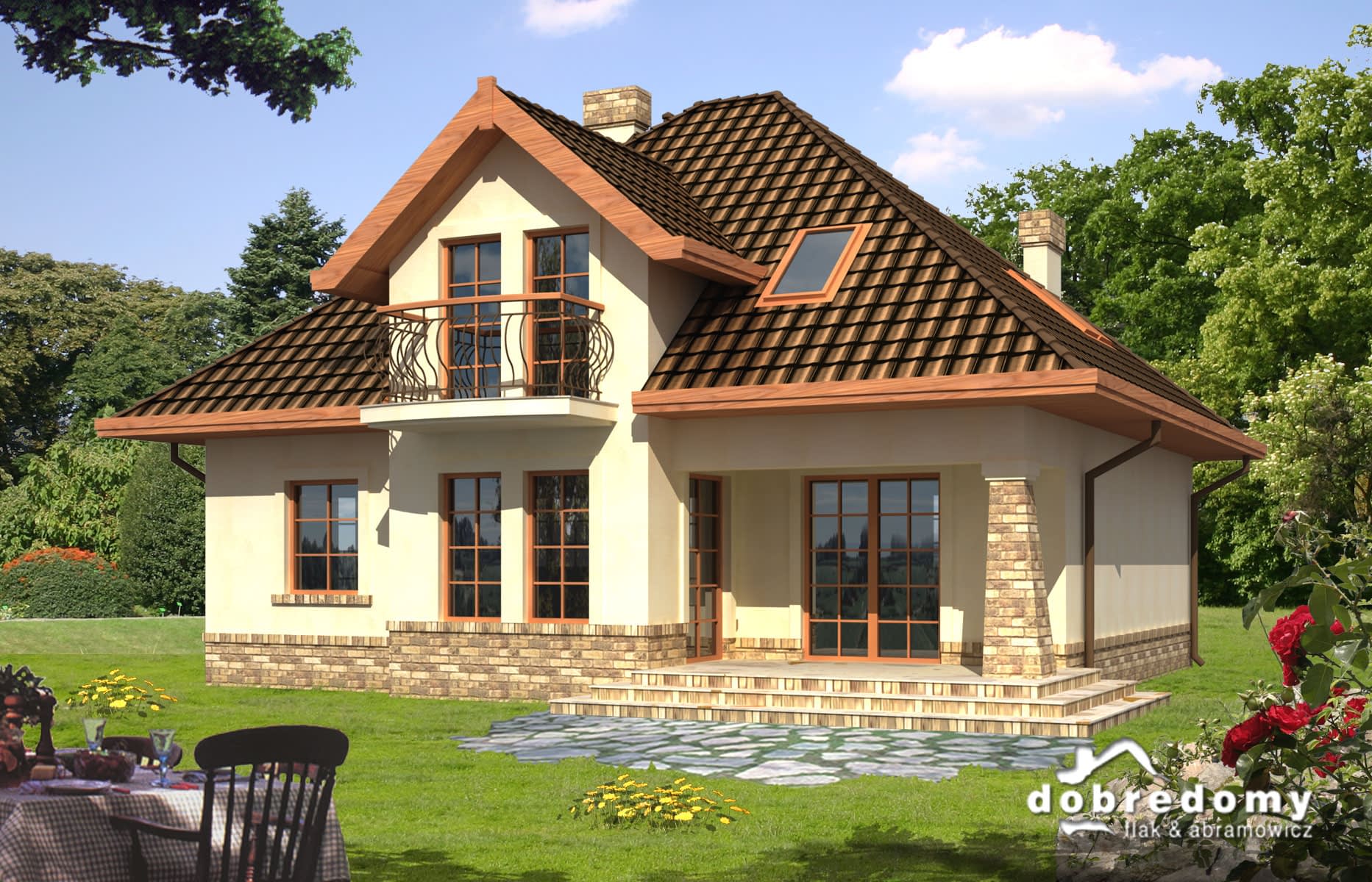 Elewacje pokryte tynkiem strukturalnym w systemie ociepleń Termo Organika. W projekcie zastosowano okna dachowe marki FAKRO. Pokrycie dachu - dachówka ceramiczna lub cementowa CREATON.
