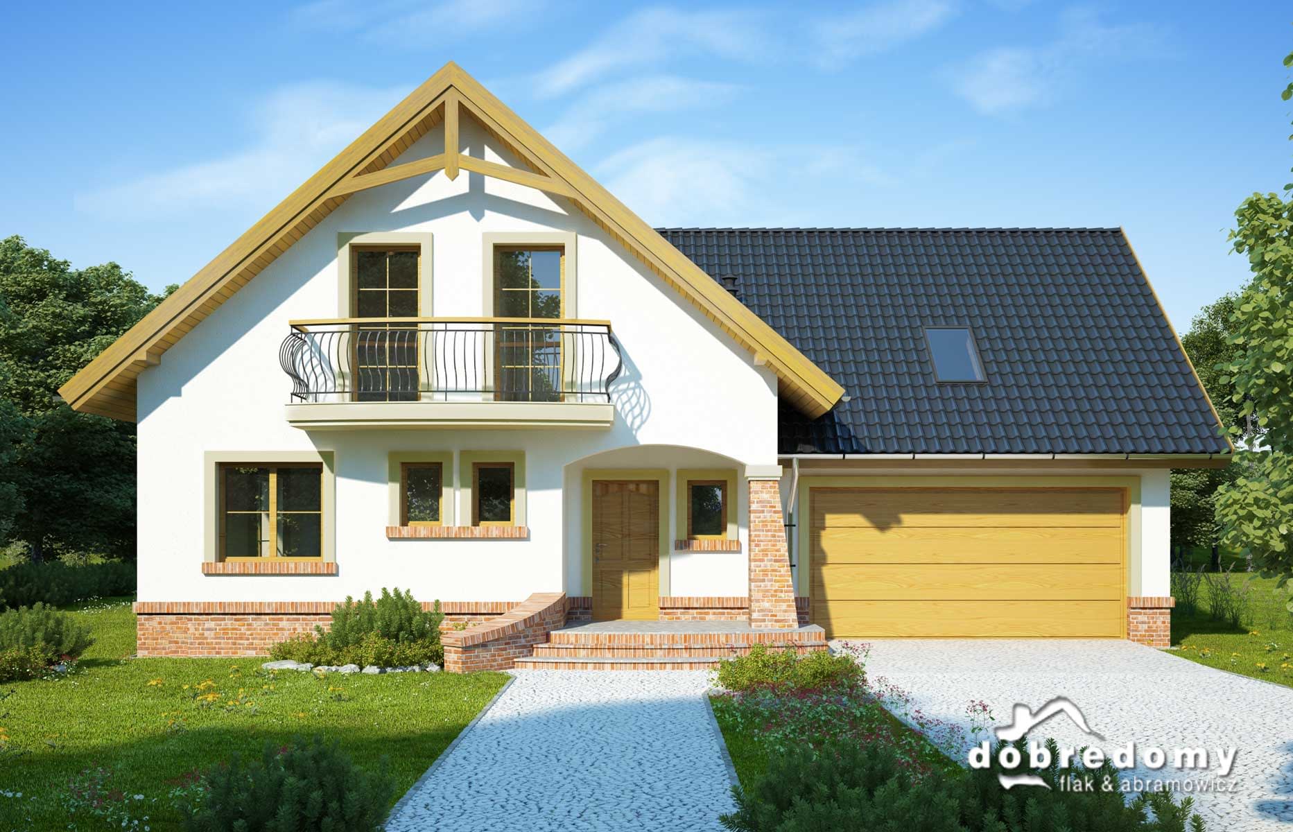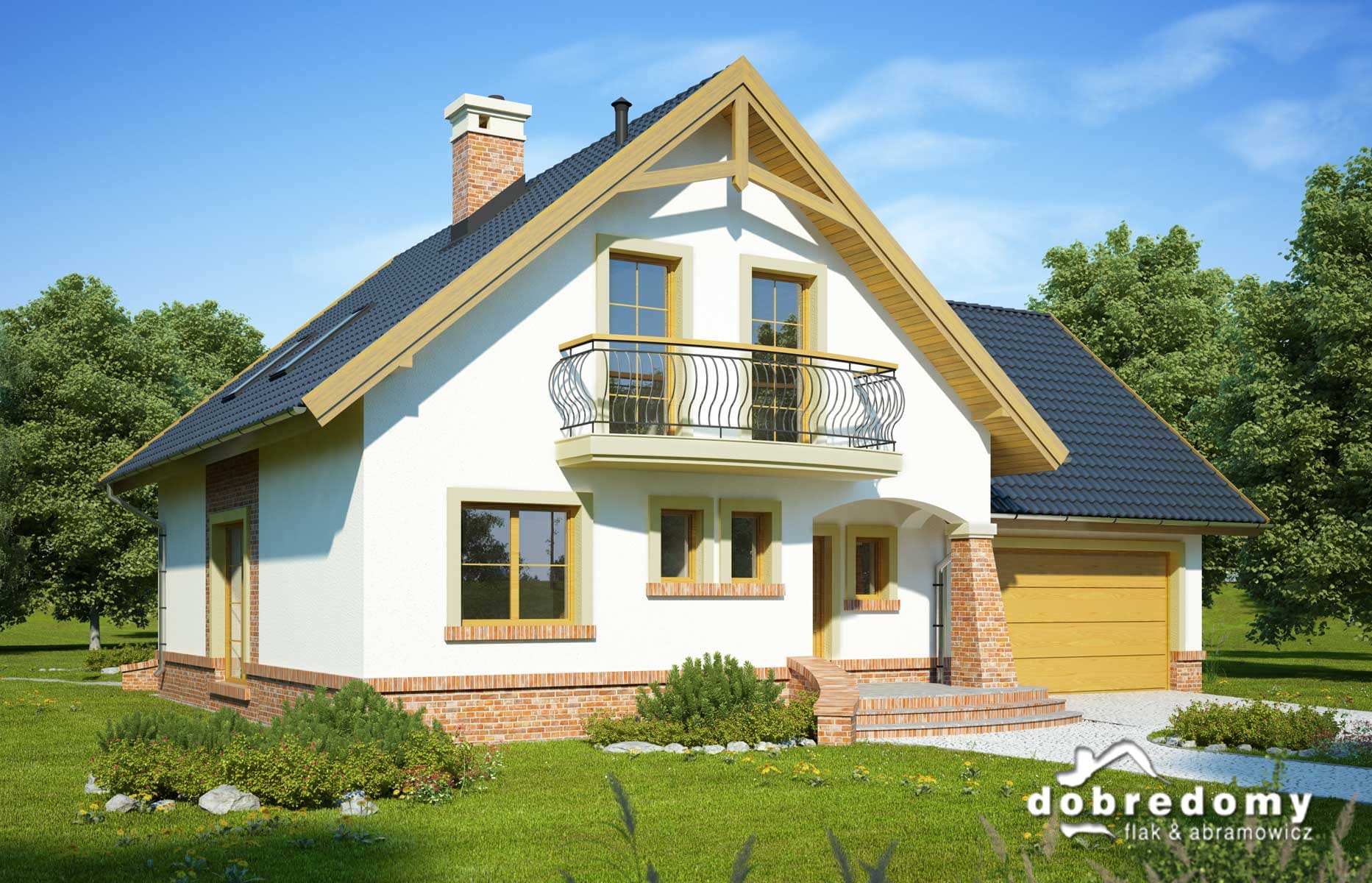 Dom z poddaszem użytkowym i garażem dwustanowiskowym, zaprojektowany z myślą o 4-6-osobowej rodzinie. Na parterze zaplanowano pokój dzienny, przestrzennie połączony z jadalnią i kuchnią, spiżarnię, łazienkę, garderobę oraz pokój gościnny/gabinet. Pomieszczenie gospodarcze dostępne z garażu. Poddasze to trzy sypialnie (w tym jedna z własną garderobą) , łazienka oraz strych, który można zaadaptować na dodatkowy pokój. Projekt może być wykorzystany do zabudowy bliźniaczej. Projekt dostępny w wersji z garażem jednostanowiskowym - Tuliusz oraz bez garażu - Tuliusz III.