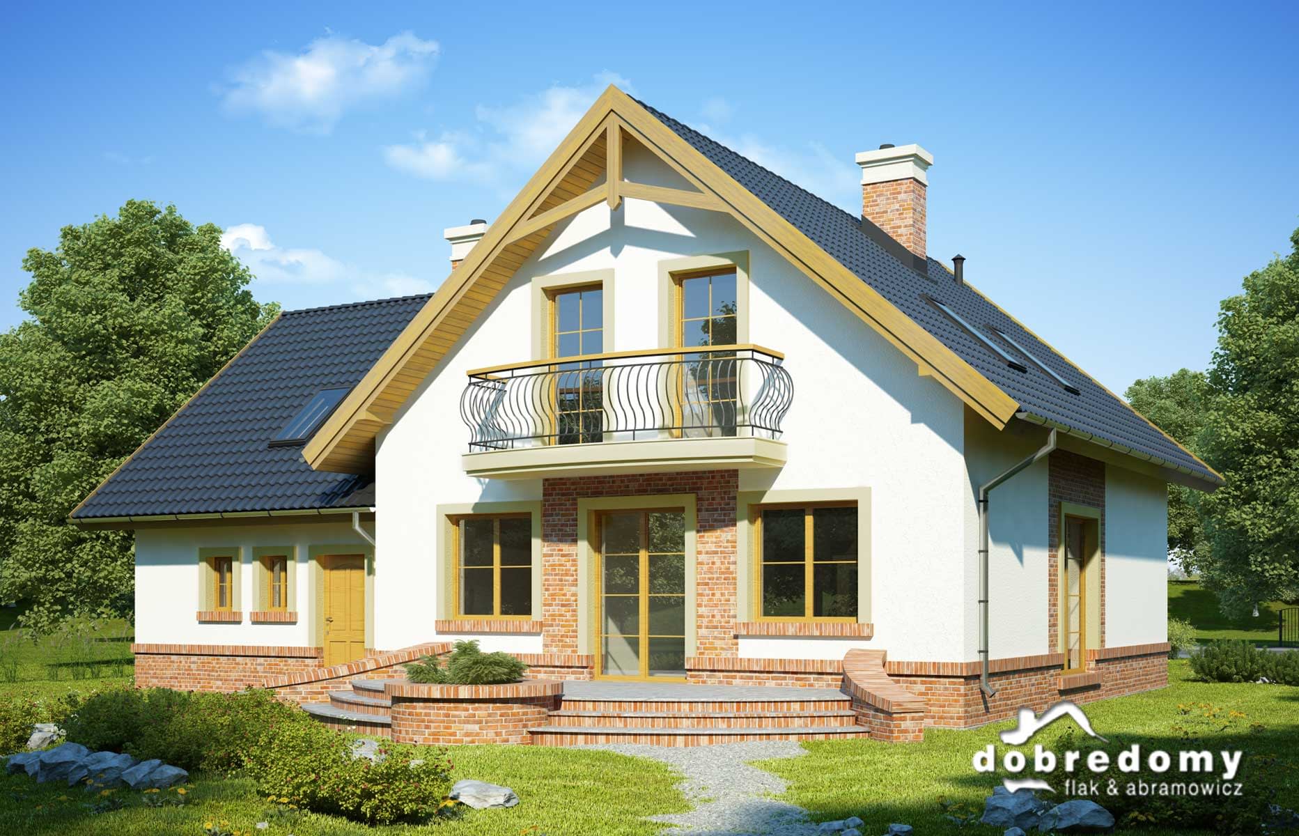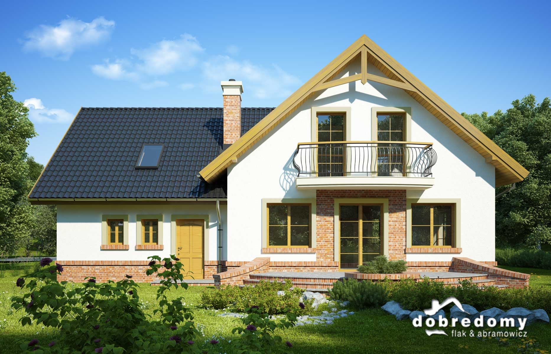 Elewacje pokryte tynkiem strukturalnym w systemie ociepleń Termo Organika. W projekcie zastosowano okna dachowe marki FAKRO. Pokrycie dachu - dachówka ceramiczna lub cementowa CREATON.