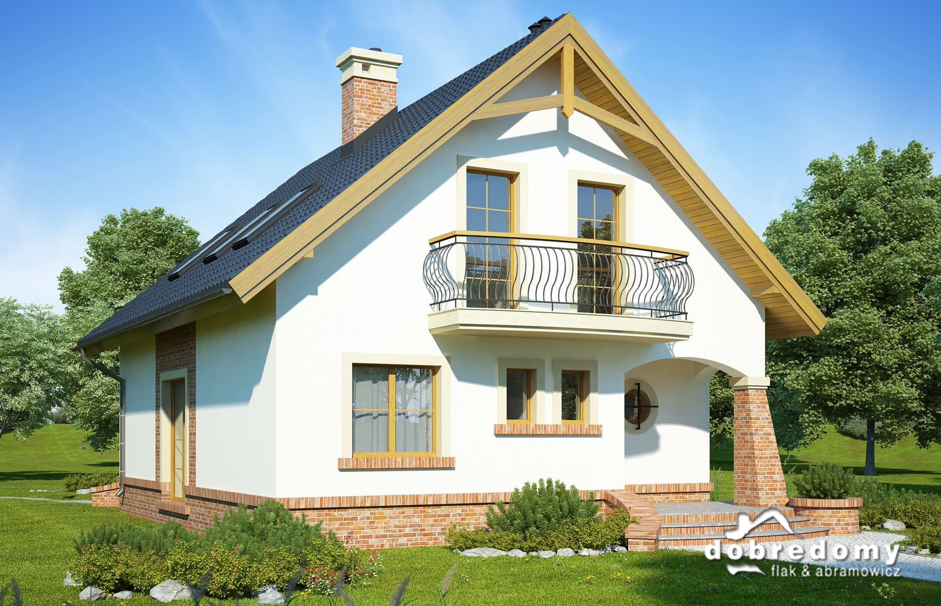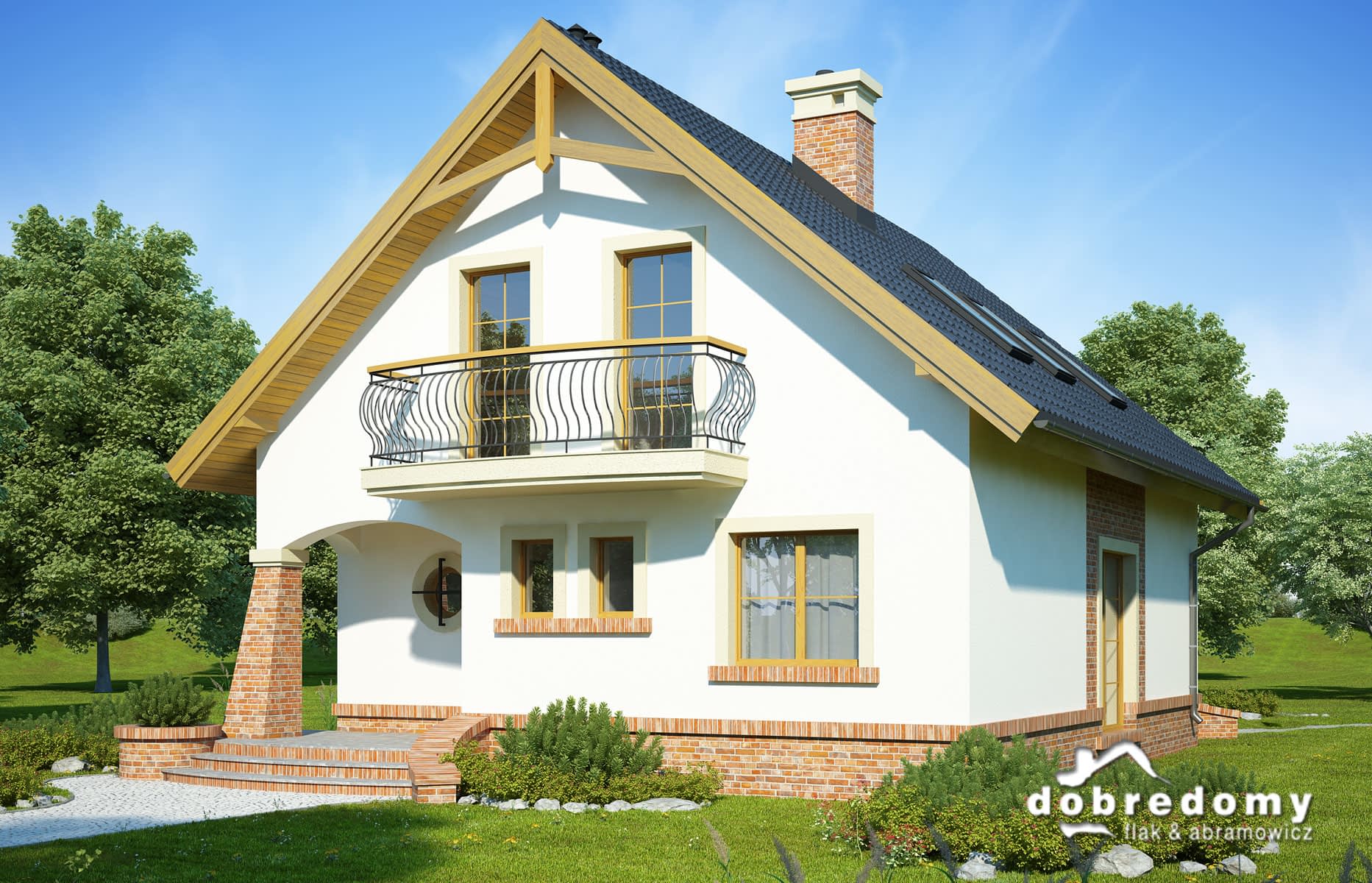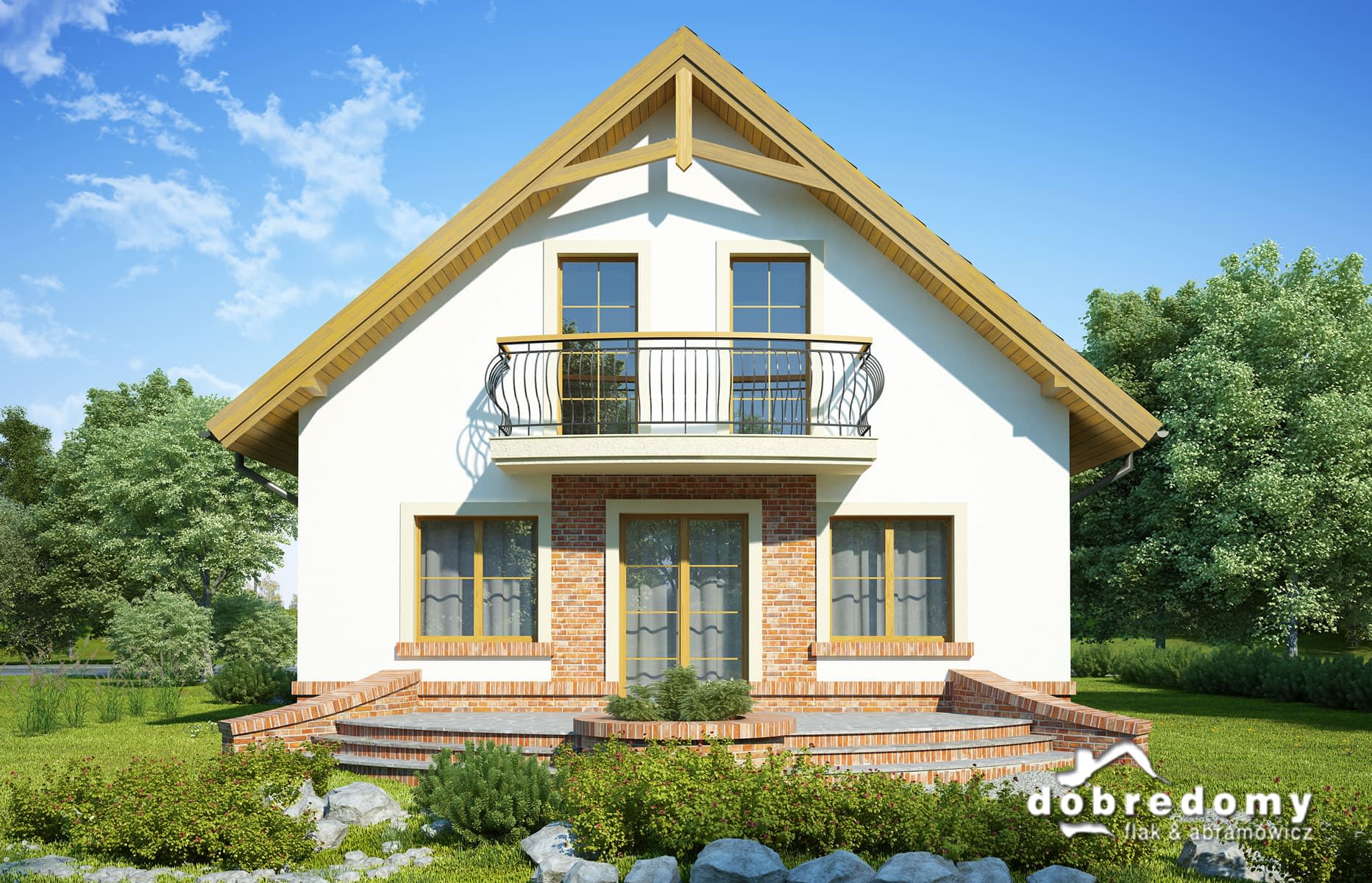Elewacje pokryte tynkiem strukturalnym w systemie ociepleń Termo Organika. W projekcie zastosowano okna dachowe marki FAKRO. Pokrycie dachu - dachówka ceramiczna lub cementowa CREATON.