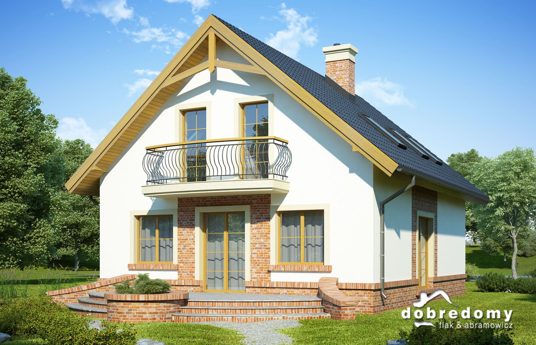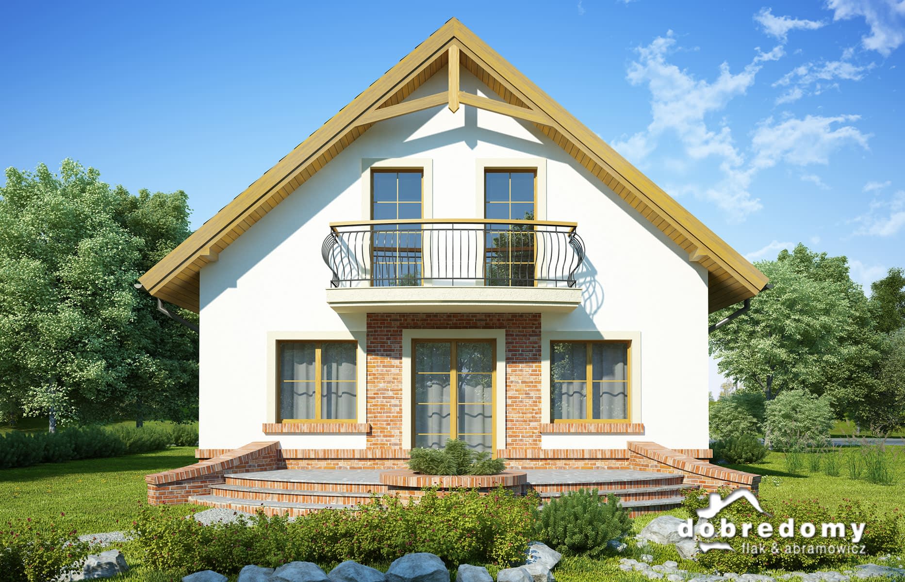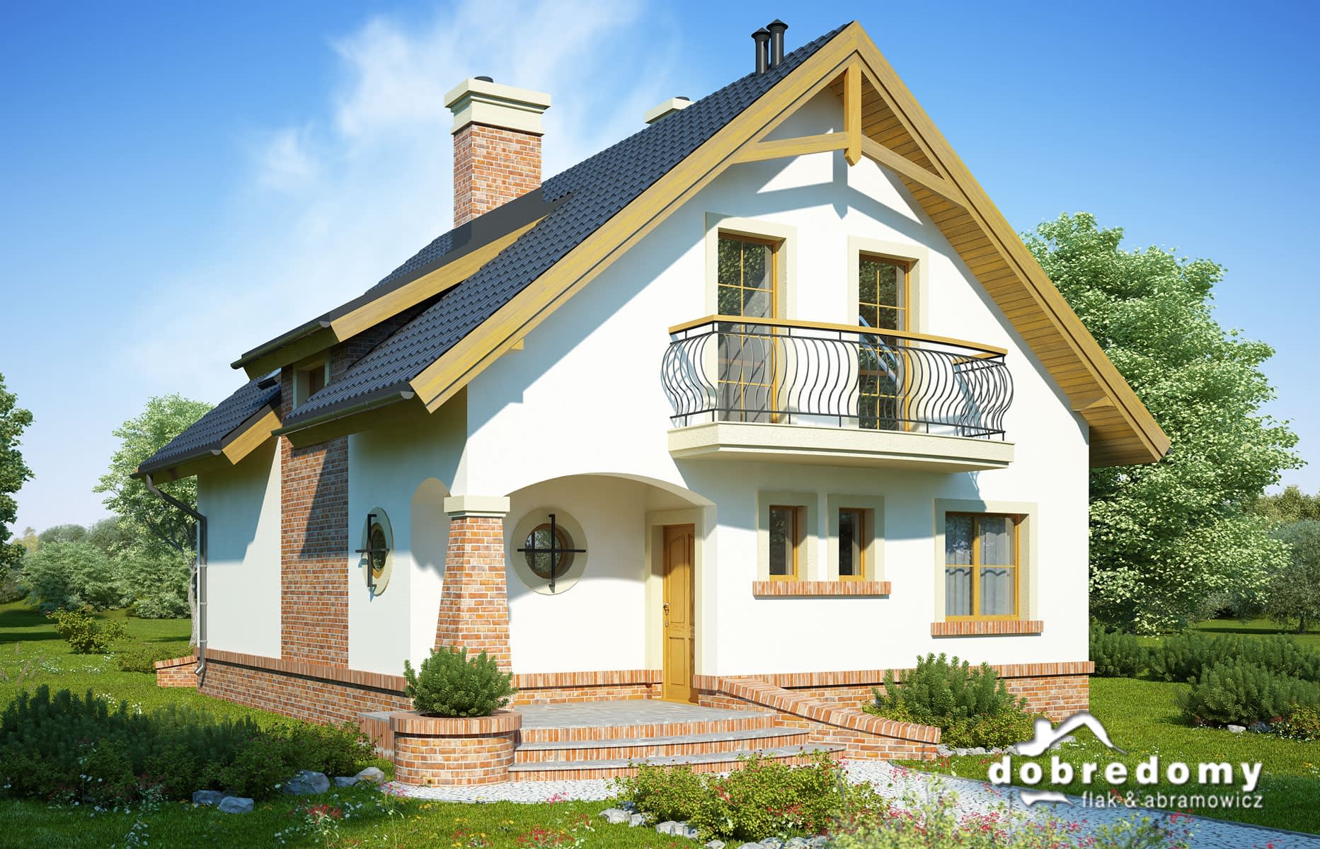 Elewacje pokryte tynkiem strukturalnym w systemie ociepleń Termo Organika. W projekcie zastosowano okna dachowe marki FAKRO. Pokrycie dachu - dachówka ceramiczna lub cementowa CREATON.