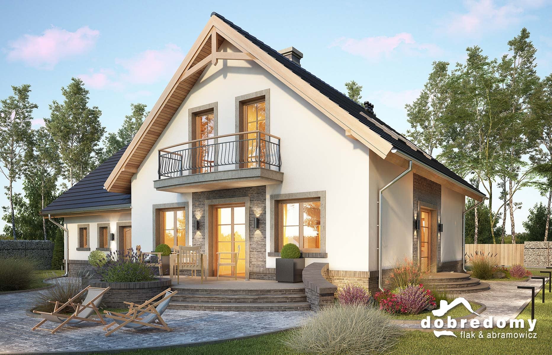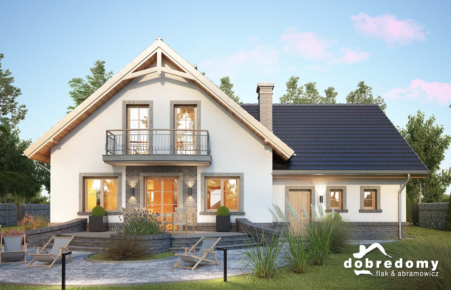 Dom z poddaszem użytkowym, zaprojektowany z myślą o 4-6-osobowej rodzinie.Na parterze zaplanowano pokój dzienny, przestrzennie połączony z jadalnią i kuchnią, spiżarnię, łazienkę, pom. gosp. oraz pokój gościnny/gabinet. Pomieszczenie gospodarcze dostępne z dwustanowiskowego garażu. Poddasze to trzy sypialnie (w tym jedna z własną garderobą), łazienka, pralnia oraz strych, który można zaadaptować na dodatkowy pokój. Projekt może być wykorzystany do zabudowy bliźniaczej. Projekt dostępny w wersji z garażem jednostanowiskowym - Tuliusz IV oraz w wersjach z innym układem pomieszczeń: Tuliusz, Tulisz II, Tuliusz III oraz Tuliusz Nowy i Tuliusz Nowy II.