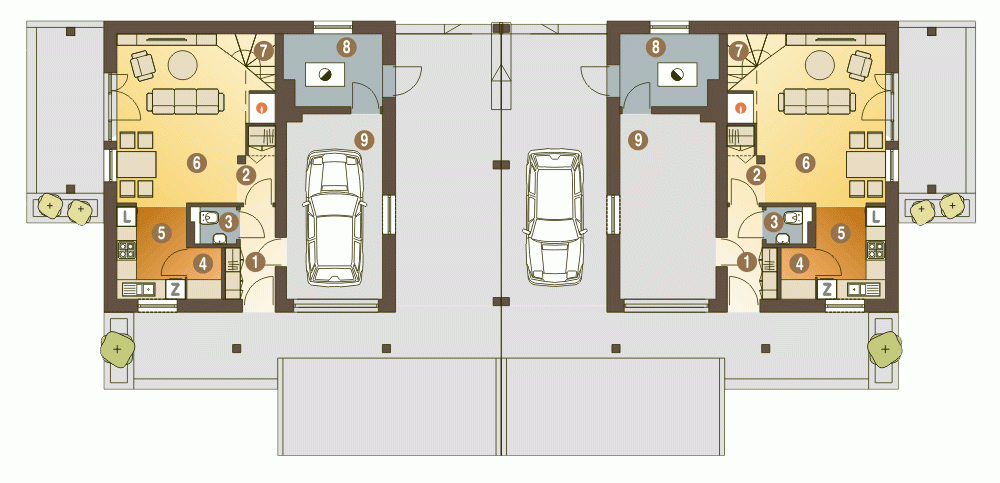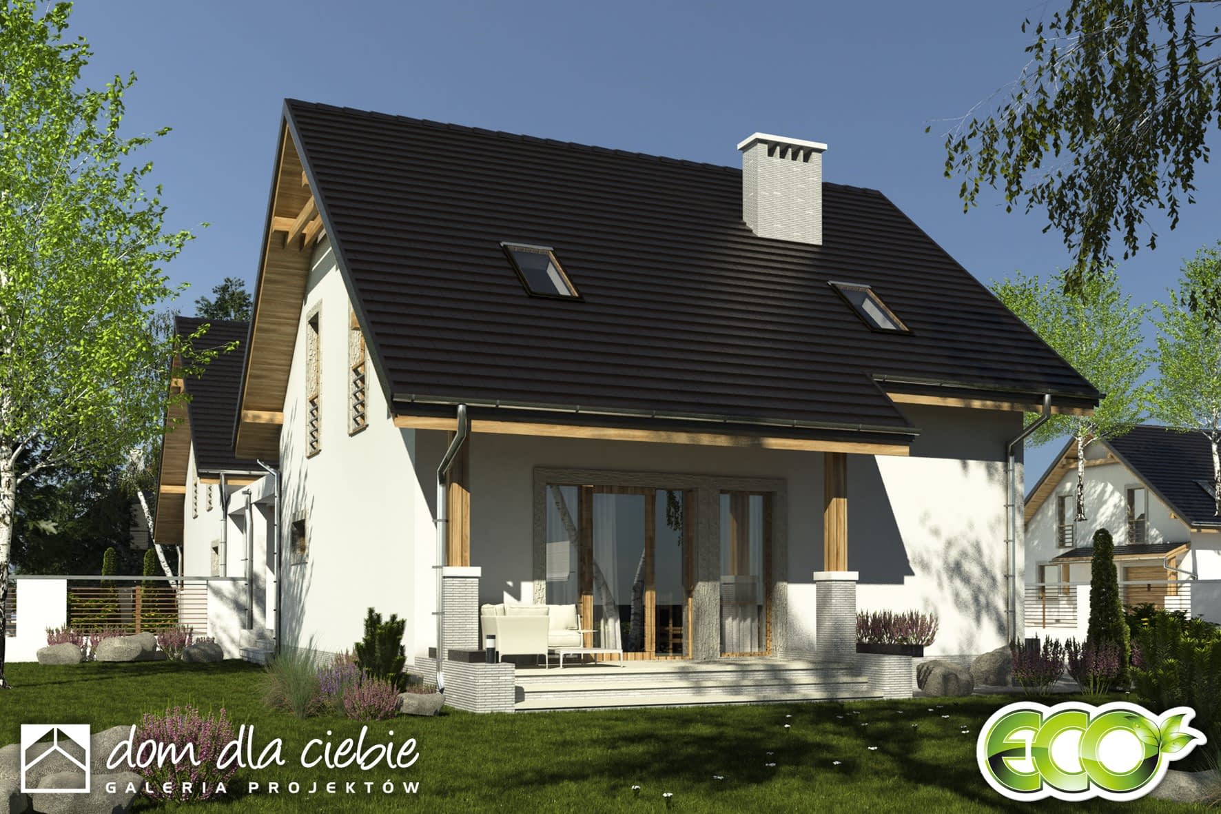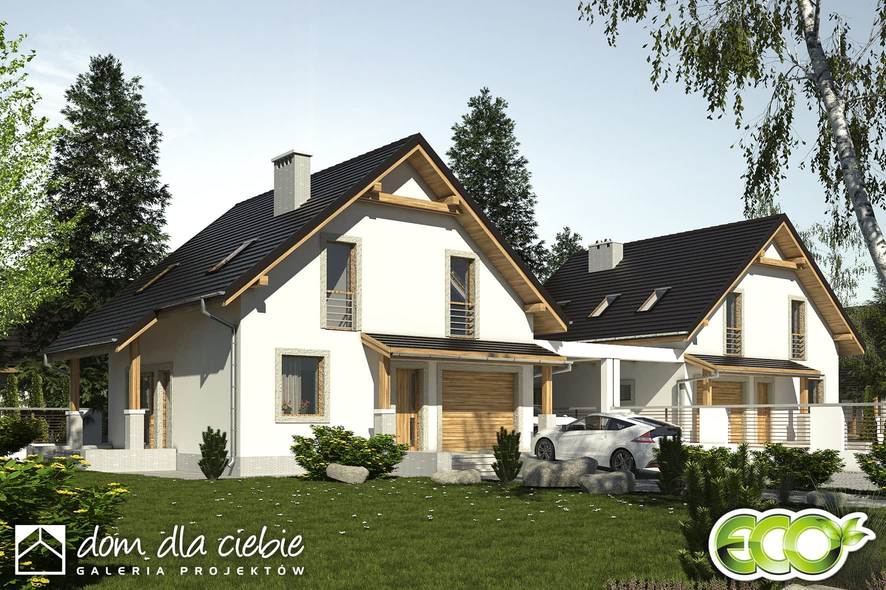 (Uwaga: ten projekt typu bliźniak oferujemy tylko jako dom dwulokalowy).Turkawka II A1-BL to budynek, który powstanie po zestawieniu dwóch segmentów Turkawki II A1 (lustrzane odbicie) od strony wiat.Projekt gotowy Turkawka II zawiera w swoim programie użytkowym: salon z jadalnią, otwarta kuchnią, schodami na górę i kominkiem oraz witryna ogrodową. Na parterze po za tym znajdują się jeszcze takie pomieszczenia jak: garderoba wiatrołap , WC, garaż i kotłownia oraz spiżarnia. Piętro składa się z przedpokoju, trzech sypialni i łazienki oraz garderoby.Turkawka jest bardzo prosta i oszczędna - będzie tania w budowie i ekonomiczna.