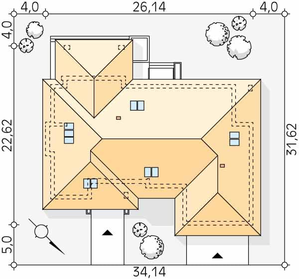 - Minimalne wymiary działki31.62 x 34.14m