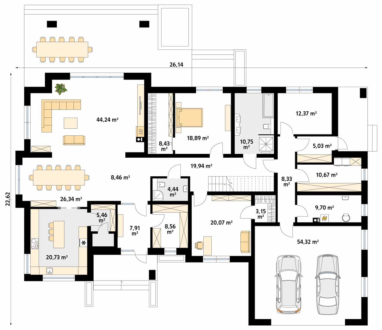 - Szerokość domu26.14 m