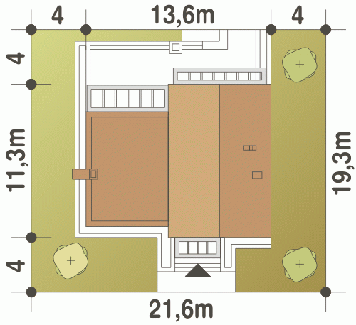 - Minimalne wymiary działki19.3 x 21.6m