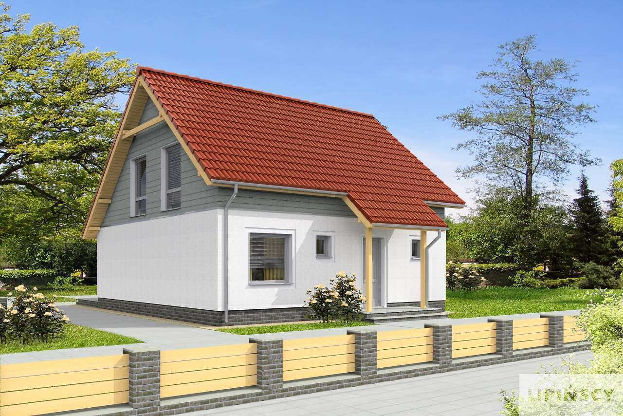 Niewielki dom z użytkowym poddaszem, zaprojektowany w technologii pasywnej. Prosta bryła kryje funkcjonalnie zaplanowane wnętrze. Na parterze znajduje się ustawna, oddzielona od salonu kuchnia, obok niej niezbędna spiżarnia, duży pokój dzienny z efektownym, przeszklonym wyjściem na taras, łazienka, pomieszczenie gospodarcze oraz dodatkowy pokój – gabinet. Poddasze zajmują trzy wygodne sypialnie, rodzinna łazienka i niewielki schowek. Dzięki zwartej, przekrytej dwuspadowym dachem bryle przy budowie można uniknąć wielu dodatkowych kosztów przy budowie, a eksploatacja domu pasywnego znacząco wpływa na obniżenie rachunków za energię. W projekcie przewidziano ogrzewanie pompą ciepła.