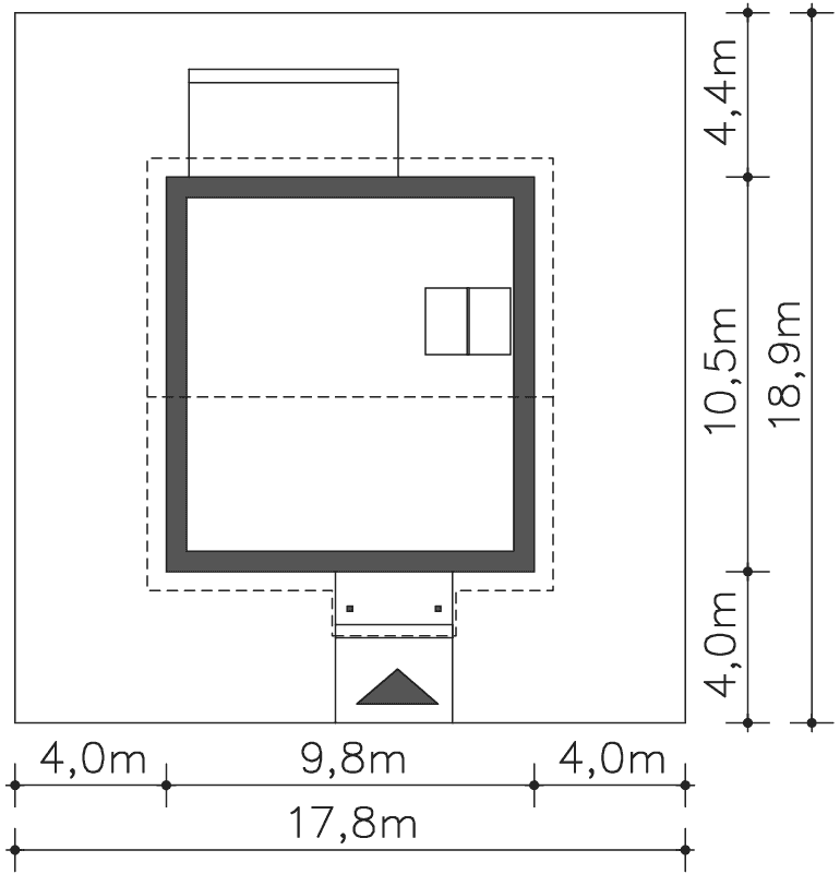 - Minimalne wymiary działki18.9 x 17.8m