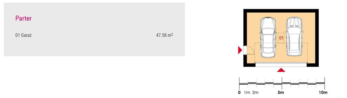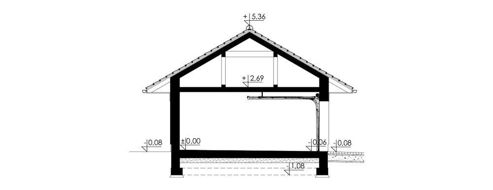 Garaż dwustanowiskowy, wolnostojący, niepodpiwniczony, z poddaszem nieużytkowym.