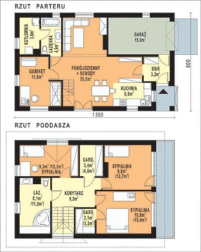 - KondygnacjeParterowy, z poddaszem