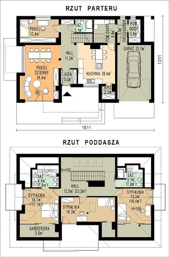 Budynek jednorodzinny parterowy z poddaszem mieszkalnym, niepodpiwniczonyKonstrukcja