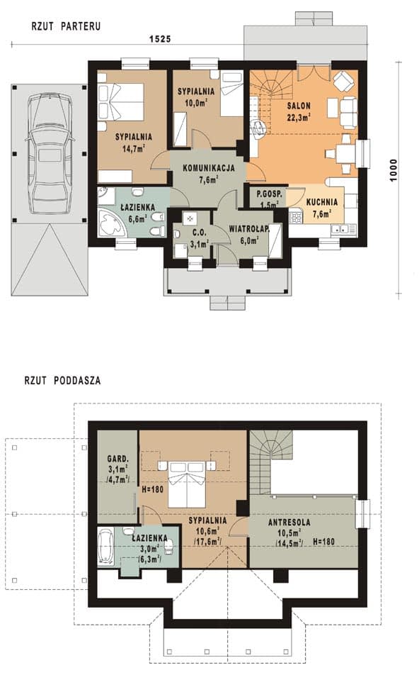 - KondygnacjeParterowy, z poddaszem