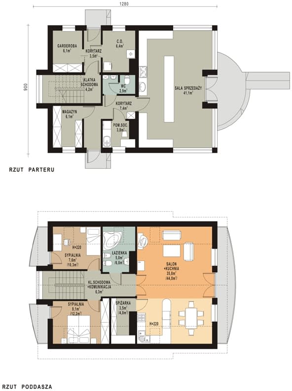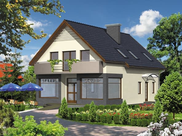 Budynek jednorodzinny parterowy z poddaszem mieszkalnym i sklepem, niepodpiwniczonyKonstrukcja