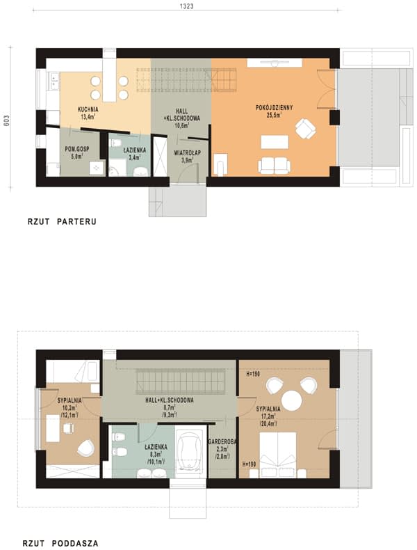 Budynek jednorodzinny parterowy z poddaszem mieszkalnym, niepodpiwniczonyKonstrukcja