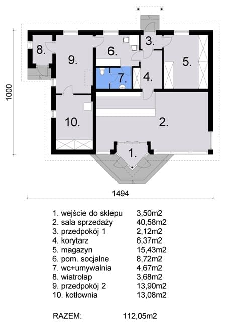 Pawilon handlowy, parterowy, niepodpiwniczony.Konstrukcja