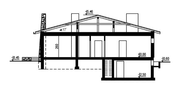 Ściany zewnętrzne: gr. 38 cm: Pustak Porotherm 38 T Dryfix; strop: FERT; schody: żelbetowe; dach: dwuspadowy o nachyleniu 17 stopni, więźba krokwiowo-płatwiowa, krycie balochodachówkąRzuty
