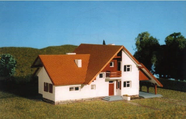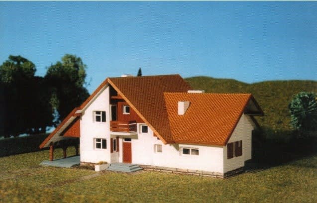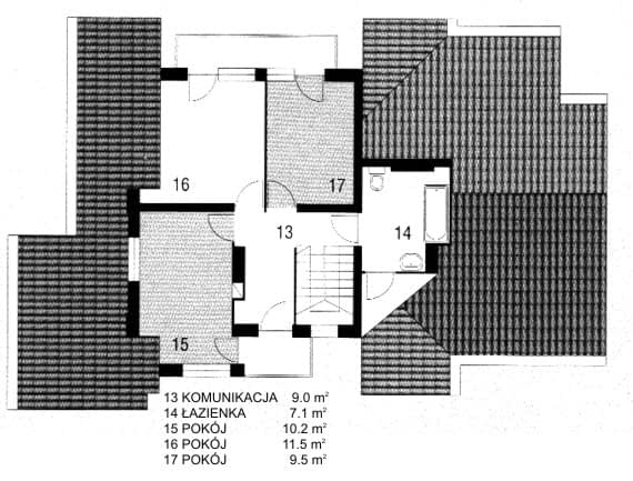 Budynek jednorodzinny parterowy z poddaszem mieszkalnym. 4 pokoje z kuchnią. Przedłużona połać dachu tworzy wiatę na samochód.Konstrukcja