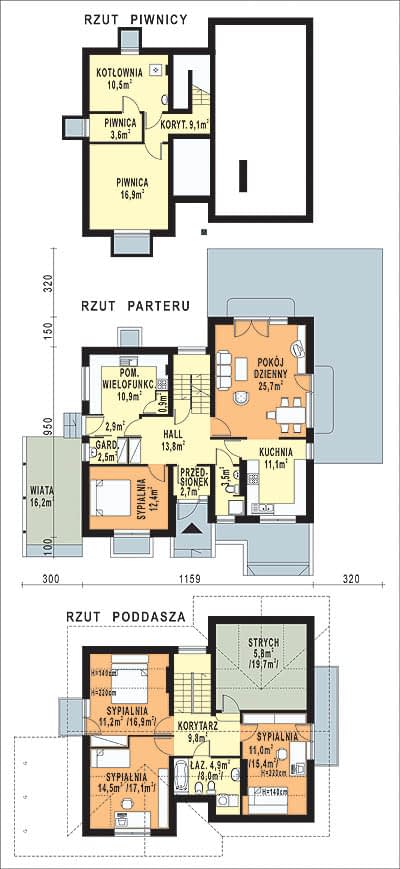 - KondygnacjeParterowy, z poddaszem