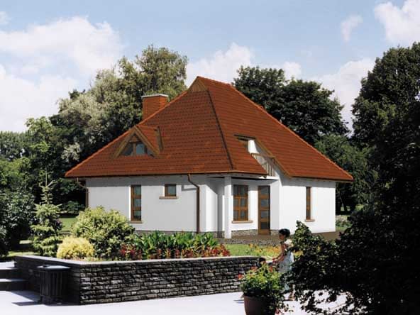 Ściany zewnętrzne: gr. 40 cm z bloczków gazobetonowych + styropian; strop: FERT; schody: żelbetowe z piwnicy na parter, drewniane z parteru na poddasze; dach: czterospadowy o nachyleniu 45 stopni, więźba drewniana krokwiowo-kleszczowa, krycie dachówkąRzuty