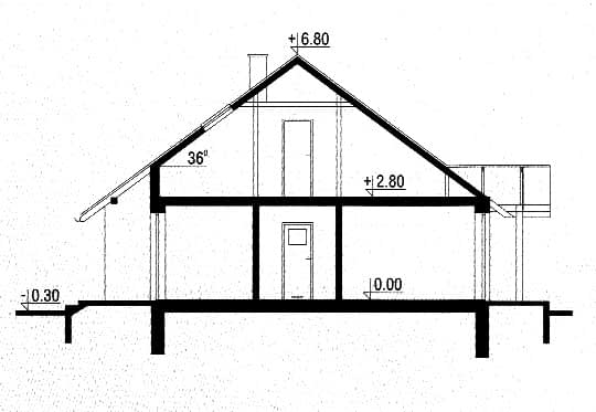 Ściany zewnętrzne: gr. 40,0 cm z bloczków gazobetonowych + styropian; strop: drewniany; schody: drewniane; dach: czterospadowy o nachyleniu 36 stopni, więźba płatwiowo-jętkowa, krycie dachówką cementową lub ceramicznąRzuty