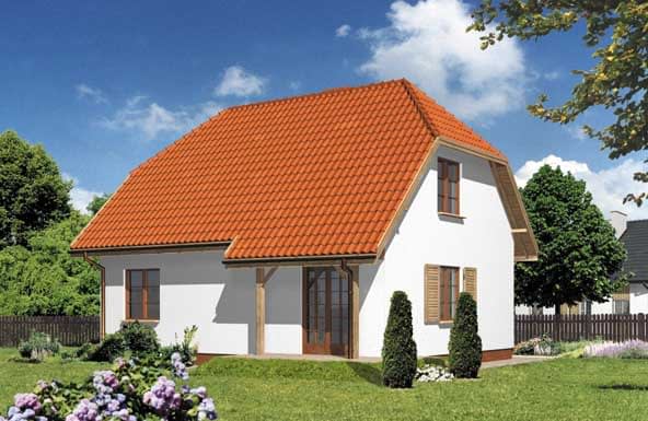 Ściany zewnętrzne: gr. 34cm: pustak YTONG + styropian; strop: drewniany; schody: drewniane, policzkowe; dach: dwuspadowy o nachyleniu 45 stopni z naczółkami, więźba drewniana, krycie blachą stalową powlekaną imitującą dachówkęRzuty