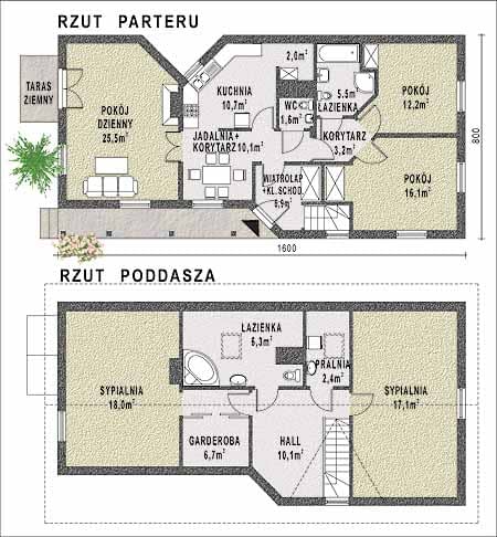 - KondygnacjeParterowy, z poddaszem