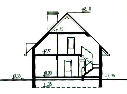 Ściany zewnętrzne: gr. 32 cm; bloczek YTONG + styropian; strop: płyta żelbetowa; schody: drewniane; dach: czterospadowy o nachyleniu 45 stopni, więźba krokwiowo-płatwiowa, krycie dachówką ceramicznąRzuty