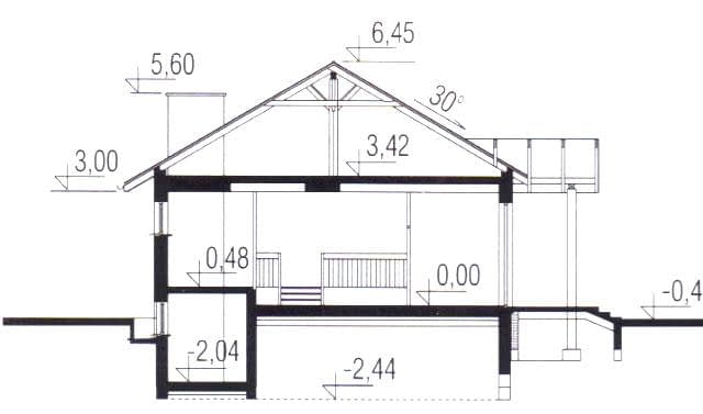 Ściany zewnętrzne: grubość 36,5 cm z bloczków YTONG; strop: nad piwnicą - płyta żelbetowa, nad parterem - FERT; schody: żelbetowe; dach: czterospadowy o nachyleniu 30 stopni, więźba drewniana, krycie dachówką ceramicznąRzuty