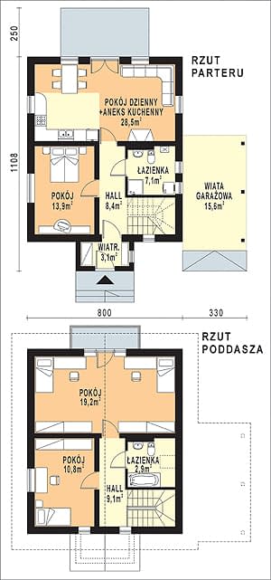 - dobudowy garażu lub wiaty do elewacji bocznej budynku lub rezygnacji z nich