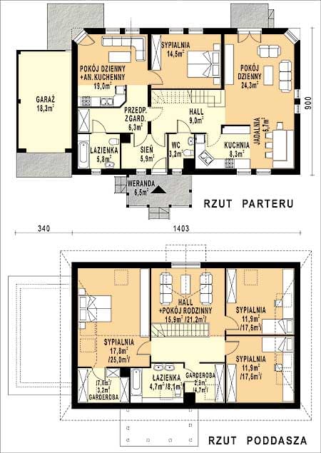 Budynek trzypokoleniowy, parterowy, z poddaszem mieszkalnym, niepodpiwniczonyKonstrukcja