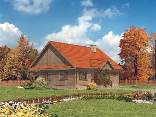 Ściany zewnętrzne: gr. 26 cm szkieletowe, drewniane; strop: drewniany; dach: dwuspadowy o nachyleniu 36 stopni, więźba krokwiowo-jętkowa, krycie dachówkąRzuty