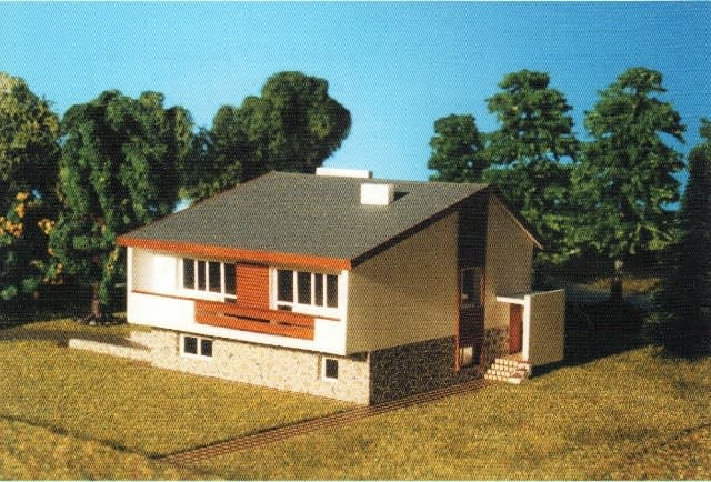 Budynek jednorodzinny. Część mieszkalna na parterze. W przyziemiu garaż i pomieszczenia techniczno-gospodarcze z oddzielnym wejściem. Projekt zawiera 3 wersje dachu: płaski, dwuspadowy i czterospadowy.Konstrukcja