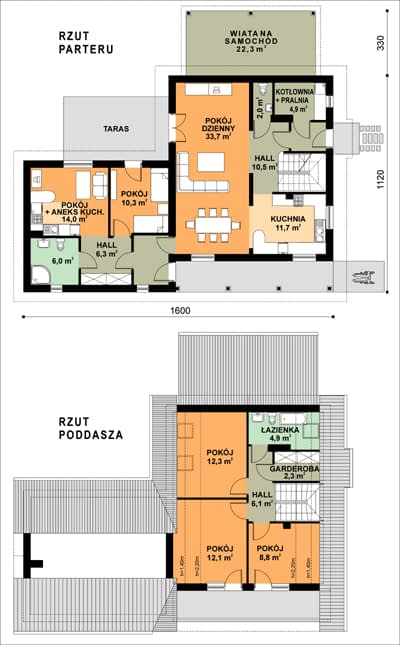 - KondygnacjeParterowy, z poddaszem