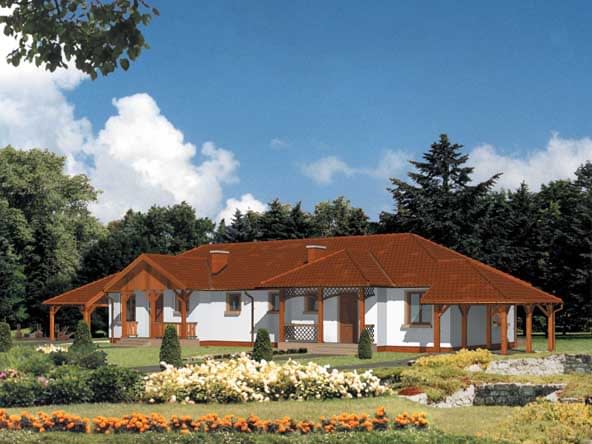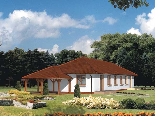 Ściany zewnętrzne: grubość 38 cm z pustaków POROTHERM; strop: podwieszany do wieszara dachowego; dach: czterospadowy o nachyleniu 30 stopni, więźba drewniana o układzie wieszarowym, krycie dachówką bitumicznąRzuty