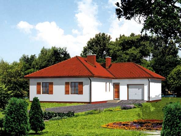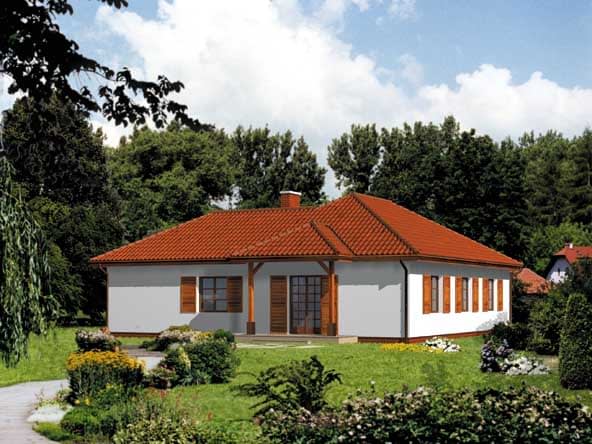 Ściany zewnętrzne: gr. 36,5 cm z bloczków YTONG; strop: drewniany, ocieplany wełną mineralną; dach: czterospadowy o nachyleniu 30 stopni, więźba drewniana krokwiowo-płatwiowa, krycie dachówką bitumiczną w kolorze terekotaRzuty