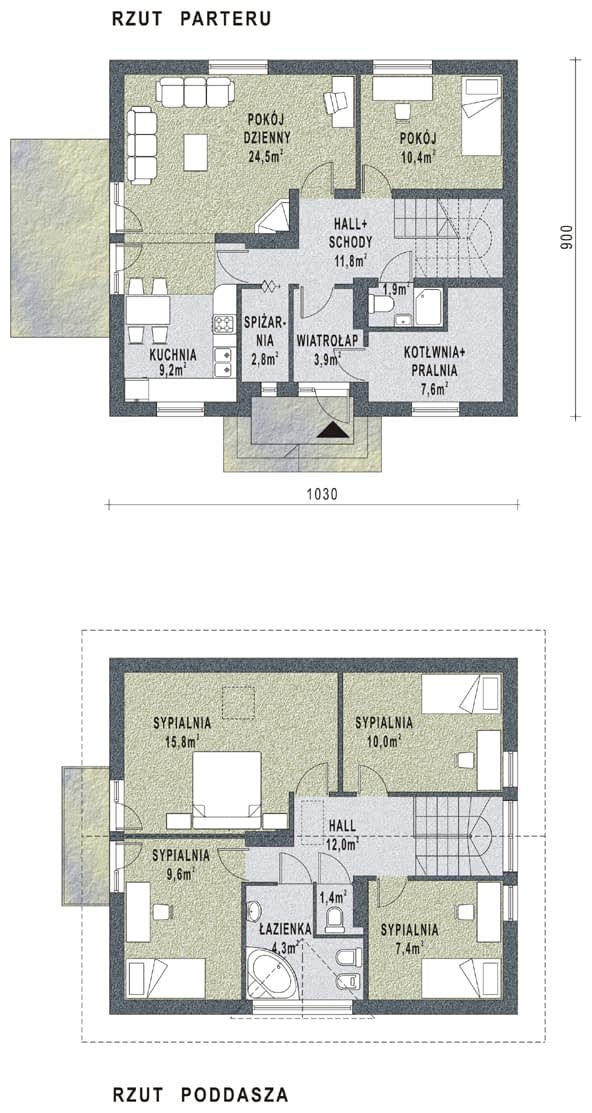 - KondygnacjeParterowy, z poddaszem