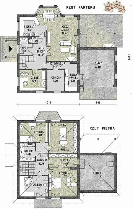 - KondygnacjeParterowy, z poddaszem