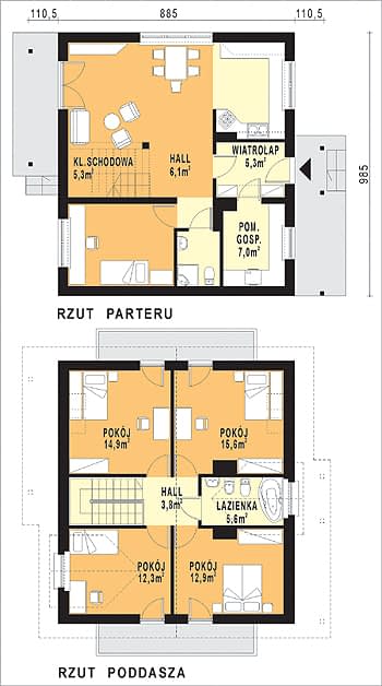 - KondygnacjeParterowy, z poddaszem