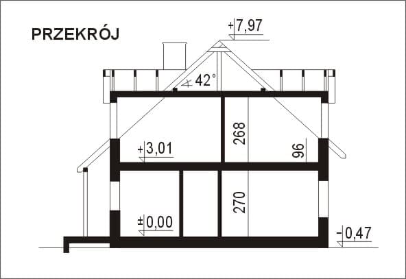 - Kąt nach. dachu42°