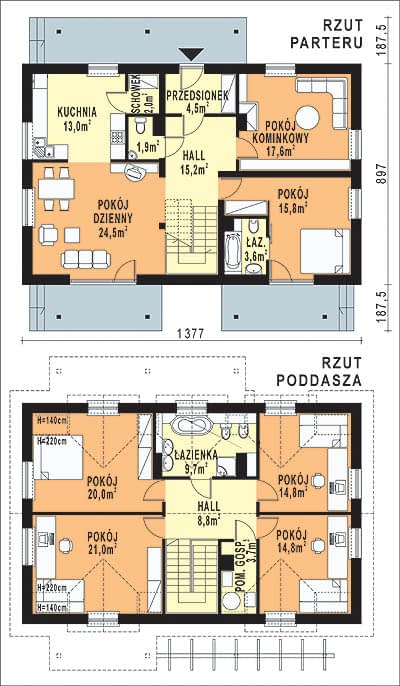- KondygnacjeParterowy, z poddaszem