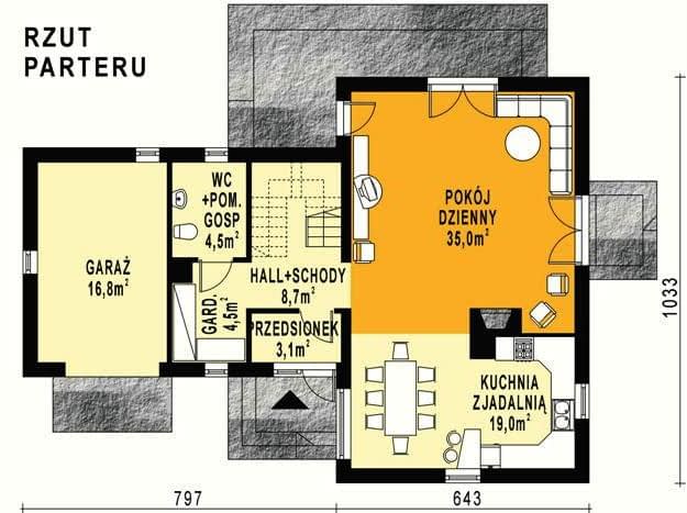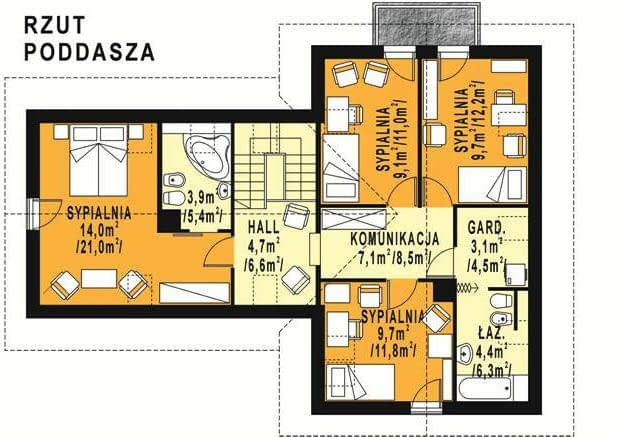 - KondygnacjeParterowy, z poddaszem