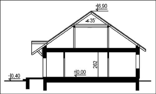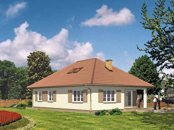 Ściany zewnętrzne: gr. 36 cm z bloczków YTONG; strop: żelbetowy; dach: czterospadowy o nachyleniu 35 stopni, więźba krokwiowo-płatwiowo-stolcowa, krycie blachodachówkąRzuty